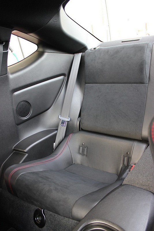 Fahrer von 1,85 bis 1,90 m lassen mit Ihrer Sitzlehne zwischen 5 und 0 cm Platz zur Rückbank! Zu wenig für Soziuspassagiere und daher ist der BRZ auch als 2+1 Sitzer mit erweitertem Stauraum zu verstehen. Die Sitzkinematik macht den Zustieg in den Fond ohnehin zum umständlichen Unterfangen. Der Drehzahlmesser ist perfekt mittig und sehr gut ablesbar positioniert, während der Tachometer viel zu klein und damit unbrauchbar ist. Alternativ gibt es eine gut ablesbare digitale Geschwindigkeitsanzeige im Drehzahlmesser.