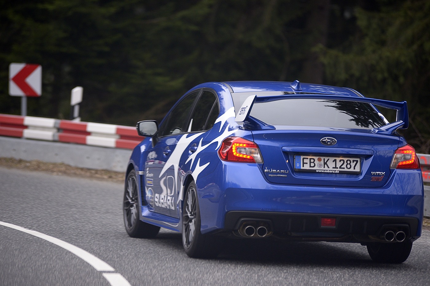 Ein blauer STI, mit Sternen beklebt – der Test lässt sich gut an. Sportlich-komfortabele Sitze, Ziernähte und unterschäumtes Plastik - das Interieur wirkt auf einen GT-Fahrer fast mondän. Und schon auf den ersten Kilometern wird klar: Der neue STI kann erwartungsgemäß einiges besser als sein Vorfahre. Die kurze Lenkübersetzung, die knackige Schaltung, die gut zupackende Bremse – all das würde ich mir für meinen siebzehn Jahre alten Impreza wünschen.