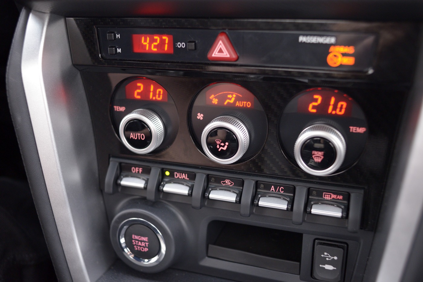 Der Blick in Richtung Schalthebel sorgt zunächst für eine Überraschung: Hier ist ein Automatik-Getriebe an Bord! Die gute Nachricht: Mit den Schaltwippen am Lenkrad kann man die Gänge im BRZ auch vollständig manuell einlegen.