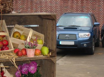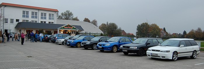 Getroffen hatten wir uns auf dem Parkplatz eines Schnellrestaurants, wo wir zunächst genügend Gesprächsstoff über den ältesten Subaru beim Treffen (einen Leone Hatchback), über die Berliner Clique, die extra aus der Hauptstadt angereist war, und die ein oder andere Neuerwerbung der Nordlichter hatten. Nach ausreichend Fachsimpelei sattelten wir die Subis und ritten mit unseren rund 2000 Pferdchen ab ins Alte Land, wo bereits Frau Schuback vom gleichnamigen Obstparadies mit leckerem warmen (!) Apfelsaft auf uns wartete. Nachdem wir im gemütlichen Lokal Platz genommen hatten, begann sie sogleich mit einer Informationstour rund um das Thema Apfelanbau - das Alte Land zählt schließlich zu den größten Anbaugebieten Europas. Einer Verköstigung verschiedener Apfelsorten folgte der Geschicklichkeitstest, die längste zusammenhängende Schale von einem Apfel runterzuschälen.