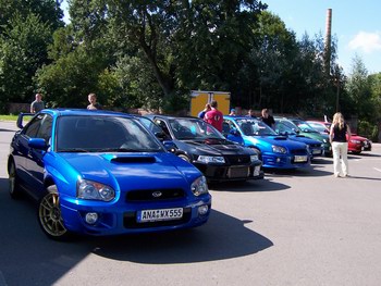 Die Teilnehmerzahl war von vorn herein auf 20 Fahrzeuge begrenzt, um ein zu weites Auseinanderreißen der Truppe zu vermeiden. Letztenendes versammelten sich dann vor einem Frankenberger Hotel sechs kurvenhungrige Subianer sowie ein Vertreter des EVO-Forums, der sich den Spaß nicht entgehen lassen wollte. Nach der obligatorischen akademischen 1/4h ging’s erstmal in einer kleinen Runde durch die Innenstadt von Frankenberg zur Tankstelle, denn zwei, drei Leute hatten einen weiteren Anfahrtsweg und dementsprechende leere Tanks.