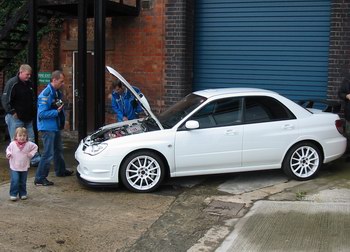 Dieser führte uns am frühen Morgen nach Tewkesbury, wo wir den berühmten Importeur und Tuner "Litchfield" besuchten. Bereits vor dem Verkaufsraum standen einige Schmuckstücke japanischer Hersteller, unter anderem der neue Impreza S-GT und ein Honda Civic Type R Stufenheck. Innen gab es noch mehr zu sehen. Neben zwei Type 25 stand da ein S204 und ein blauer Forester STI. Auch der Subaru R2 Type S ist in unseren Längengraden eher eine Seltenheit und machte trotz seiner geringen Abmessungen eine sportliche Figur. Das Highlight allerdings fuhr erst nach ein paar Minuten vor: ein blütenweißer Subaru Impreza WRX STI Spec C Type RA-R. Das Grummeln lief uns kalt den Rücken runter und im Nu waren alle rund um das Auto versammelt. Zum Glück war der Wagen schon verkauft, sonst wäre vielleicht der eine oder andere schwach geworden...