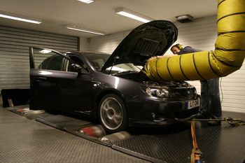 Der ausgiebigen Besichtigung dieses kompromisslosen Sportwagens folgte noch ein Rundgang durch die Werkstatt, wo sich einige britische Sondermodelle des Impreza tummelten. Zum Abschluss wurden wir Zeuge eines Prüfstandlaufs des leicht modifizierten Impreza S-GT, der satte 300 PS auf die Rolle brachte.
