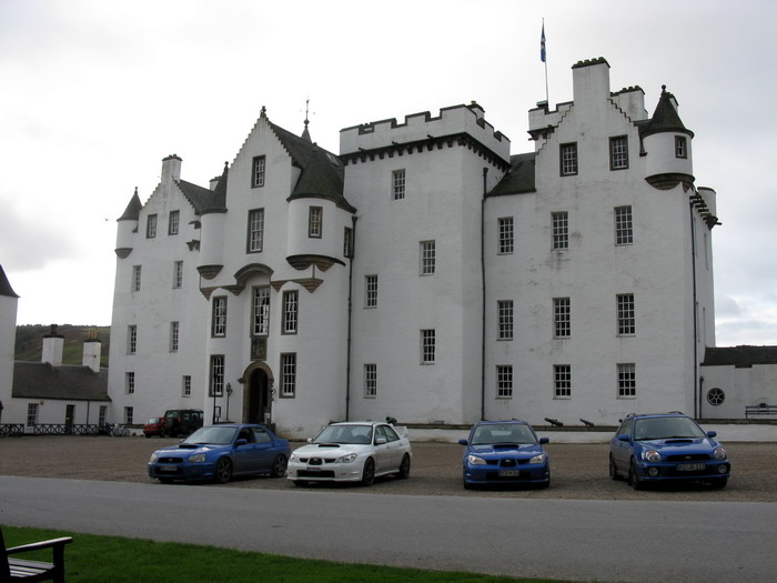 Am nächsten Morgen starteten wir nach ausgiebigem Scottish Breakfast (mit Haggis) Richtung Norden und folgten der A9 bis Blair Athol, wo uns das malerische Blair Castle erwartete. Dort machten wir einen Spaziergang im angrenzenden Garten und verwirrten die Touristen bei der Subaru-Parade vor dem Schloss. Den Fahrzeugen sah man schon nach dem ersten Tag die engen Straßen an, entsprechend dreckig im „Rallye-Style“ waren sie schon geworden.