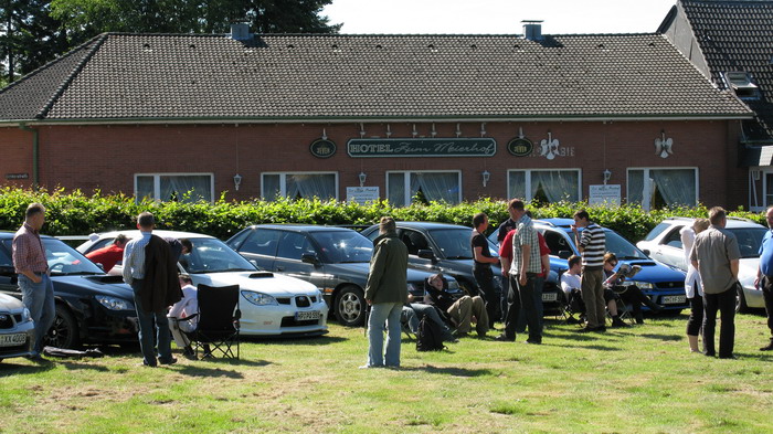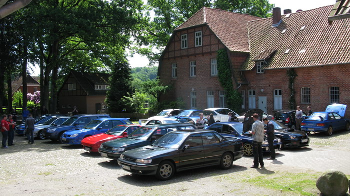 Am Estering in Buxtehude startete das Norddeutsche Subaru-Treffen zu seiner elften Auflage. Neben vielen Clubmitgliedern waren auch neue Subaru-Jünger an die Rallye-Cross-Strecke gekommen, um sich ein Bild von der Fangemeinde zu machen. Nach einigen anregenden Gesprächen über Autos, Tuning und Kurven ging es los zur Rundfahrt gen Süden. Über die landschaftlich schönen Sträßchen der Ausläufer der Lüneburger Heide fuhren wir zunächst einen Händler für klassische Automobile an. In dessen Schauräumen konnte man Oldtimer und Youngtimer bewundern und hautnah erleben. Kaufverträge wurden allerdings nicht unterschrieben, schließlich warteten im Hof die Turbos auf ihren erneuten Einsatz...