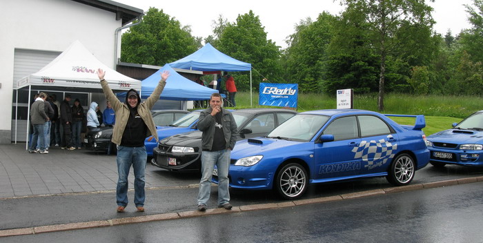 Am 6. Juni lud Markus von AK-Motorsport wieder zum alljährigen Sommerfest ein. Alles war perfekt organisiert, inklusive Thüringer Bratwurst-Braterei. Einzig das Wetter spielte nicht mit, aber die Subaru-Treter liesen sich davon nicht entmutigen und hatten umso mehr Gelegenheit, sich ihren Benzingesprächen zu widmen...